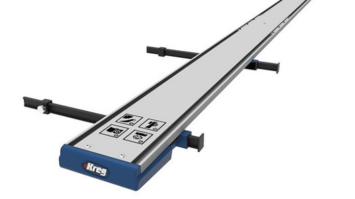 Corte con precisión y facilidad productos de chapa utilizando la guía de corte recto Kreg®. Trabaje con material de hasta 8 pies (2,43) y obtenga los cortes que necesita, tanto si utiliza una sierra circular, una sierra de calar o una fresadora de corte. (Funciona con la mayoría de las marcas).