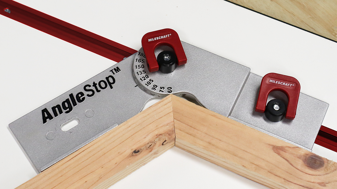 Esta solución de sujeción y tope de riel en T de ángulo variable puede cambiar para adaptarse a la forma necesaria para soportar piezas de trabajo en ángulo.